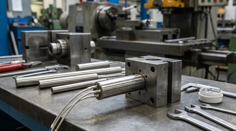 In industrial settings, a cartridge heater is a powerful tool for delivering concentrated heat precisely where it is needed. It is a cylindrical, tube-shaped heating element designed to be inserted into a drilled hole in a metal object, transferring its energy primarily through direct conduction. This makes them ideal for applications like heating dies, molds, and platens in manufacturing processes.