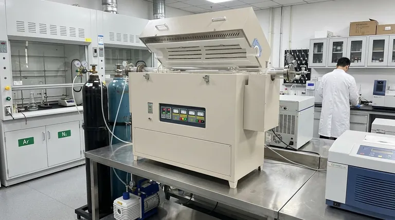 The furnace provides the heat, but not the atmosphere. The researcher is responsible for designing and implementing the system of vacuum pumps, gas lines, and flanges needed to create the controlled environment inside the tube.