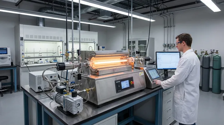 These gases are precisely metered and fed into the reaction chamber. The continuous flow ensures a consistent supply of material for the deposition reaction.