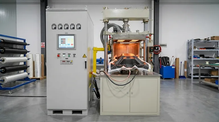 At its core, vacuum pressing and preforming are processes that use atmospheric pressure as a clamp to shape and consolidate layers of fabric or fiber, often impregnated with resin. Modern systems accomplish this with a combination of a forming tool (mold), a vacuum bag, and a precisely controlled heating system, such as infrared heaters, all managed by automated controls for consistency.