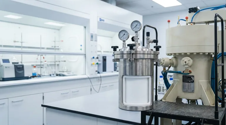 Polytetrafluoroethylene (PTFE) offers high chemical inertness, serving as a robust barrier that prevents the reaction fluid from attacking the steel autoclave.